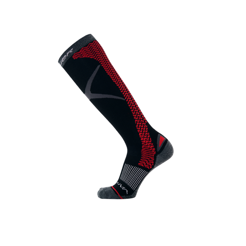 Thinner material - The sock is thinner overall and knitted to provide a forward lean and prevent pilling. It also has specific areas where the material is thinner to relieve skate pressure on the medial side.